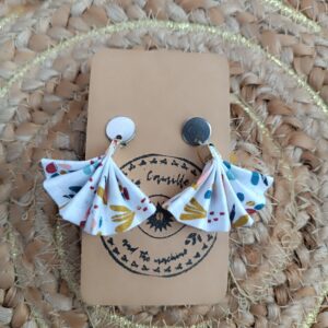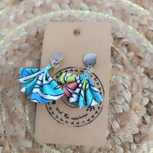 Grâce à quelques points de couture et des pliages minutieux, elles se transforment en boucles d’oreilles légères, pleines de couleur et de fantaisie, pour égayer le quotidien.