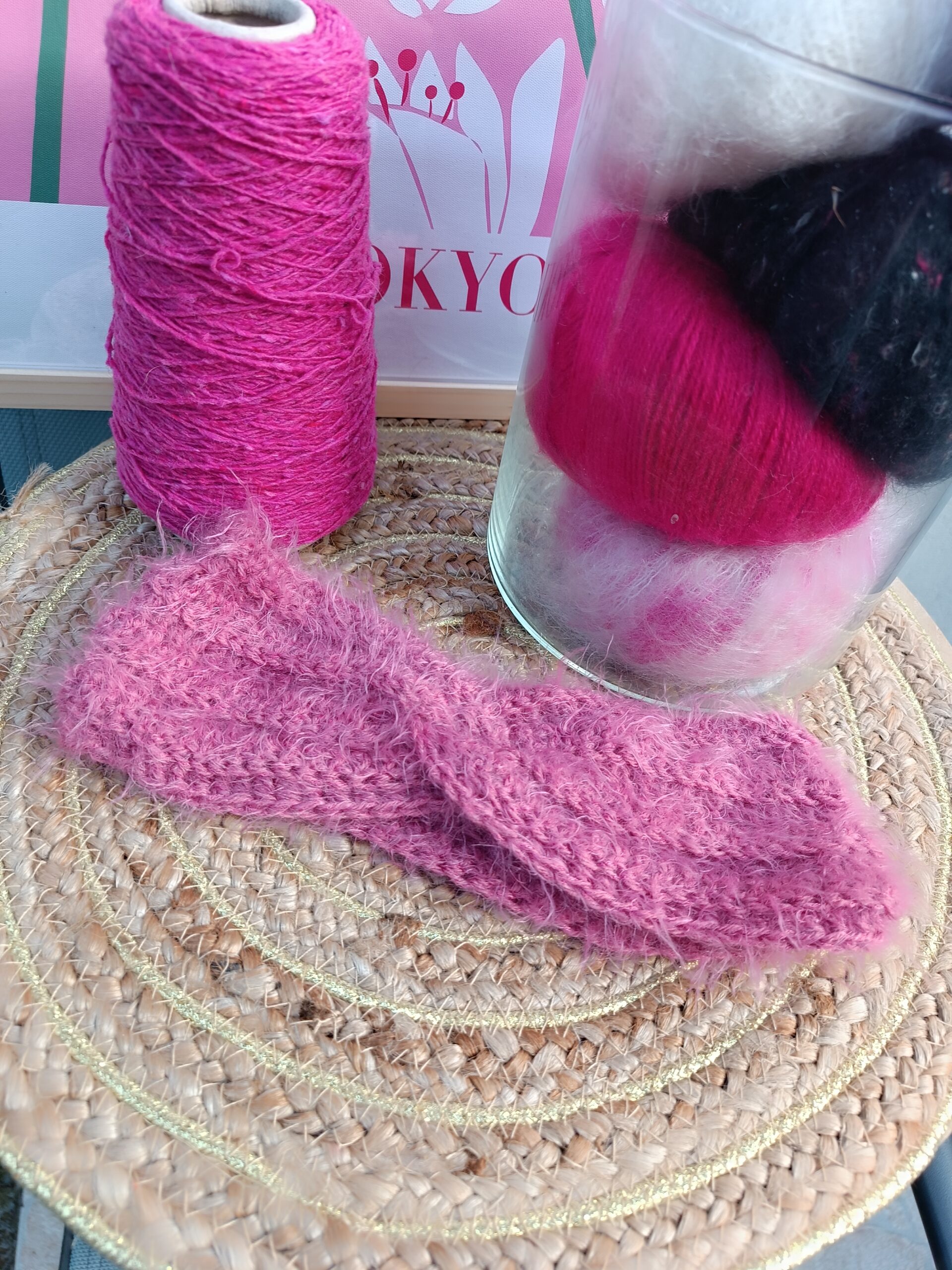 Chaque bandeau est unique : les pelotes utilisées proviennent de fins de stock, de dons ou de trouvailles chinées avec amour.